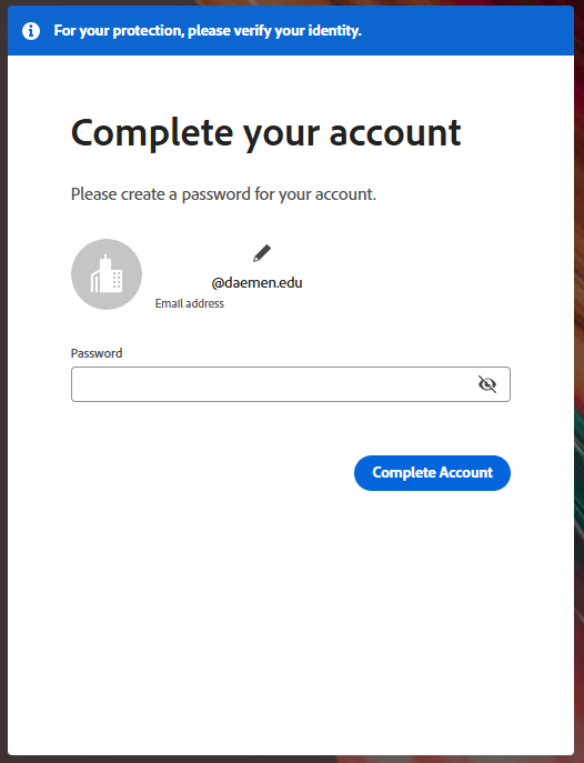 Enter your full Daemen email address and click Continue. Follow the on-screen prompts to verify your identity.