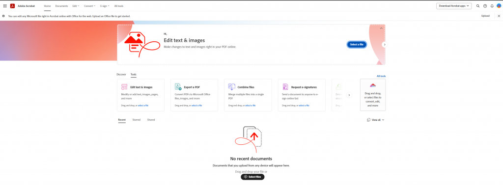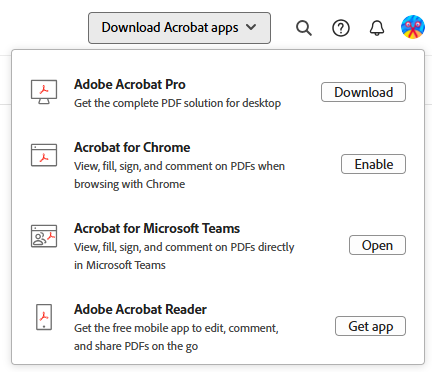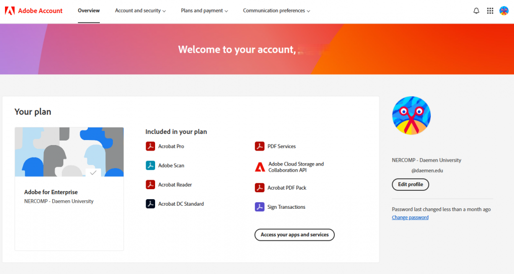 Click on the Access your apps and services button to take you to the Adobe Acrobat Pro homepage.